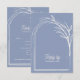 The soft dusty blue background creates a calm and timeless aesthetic, perfect for modern, garden, and elegant weddings. The built-in QR code option allows couples to link guests directly to their wedding website or online RSVP form, making responses quick and convenient.