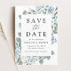 Announce your special day in style with our Elegant Dusty Blue Floral wedding save the date cards. Framed by dusty blue and white roses and hydrangeas with lush eucalyptus leaves and greenery, this enchanting design captures the romance of your love story. Personalize the dusty blue floral save the date with your names, wedding date, wedding location, wedding website, or other important details. This save the date is perfect for spring and summer weddings.