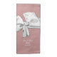 Pure cotton cloth napkins done in a dusty rose pink, with graphics of an elegant white satin looking ribbon and bow and white custom text, on one side of the napkin. Personalize the couple's names and wedding date. Great for your wedding reception, and later for every day use for the newly weds.