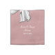 Pure cotton cloth napkins done in a dusty rose pink, with graphics of an elegant white satin looking ribbon and bow and white custom text, on one side of the napkin. Personalize the couple's names and wedding date. Great for your wedding reception, and later for every day use for the newly weds.