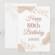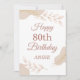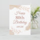 Celebrate a milestone 80th birthday with this elegant and personalized card. Featuring beautiful dusty rose and blush pink tones, with delicate gold glitter and botanical leaf illustrations. The 'Happy 80th Birthday' message is presented in a script font, with space to personalize the name, making it a truly unique keepsake.