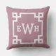 Elegant Dusty Rose Greek Key Monogram Initial Throw Pillow