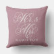 Elegant Dusty Rose Mr and Mrs Script Monogram Throw Pillow
