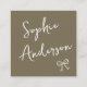 Make a polished and memorable first impression with this elegant square business card featuring a modern handwritten script name and a delicate minimalist bow illustration. Designed in a warm taupe-brown background with crisp white typography, this card blends sophistication and simplicity—perfect for creatives, entrepreneurs, stylists, consultants, boutique owners, and professionals who value timeless, clean branding.