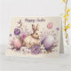 Celebrate Easter with our beautiful spring greeting card! This greeting card features an adorable bunny and colourful flowers that evoke the beauty of the season. The card's dominant colours, purple and beige, add an elegant and warm touch. Whether you're sending it to a friend, family member or loved one, this greeting card is a perfect way to wish them a happy Easter. Order now and spread the joy of the flower season with our spring Easter greeting card!