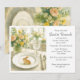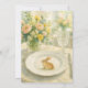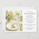 This Easter brunch invitation features an elegant watercolor illustration of a meticulously arranged place setting, complete with a floral centerpiece, crystal water glass, silver flatware, and a charming bunny motif on the plate. The design effectively conveys the warmth of an Easter family gathering. Customize this versatile template invitation with your details, available both as high-quality cardstock and convenient digital download formats.
