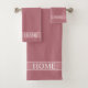 Elegant Editable Home Text on Rose Gold Pink Bath Towel Set