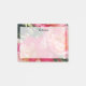 Custom sticky notes with script letters and an elegant background of pink and white striped roses.