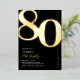 Celebrate the start of a new decade in style with our premium 80th birthday party invitations. Designed with a bold number '80' in an eye-catching serif font and real foil detailing in rich black and gold hues. This modern invitation exudes sophistication and elegance, ideal for someone who appreciates attention to detail. Make it your own with our easy-to-personalize template to elevate your milestone celebration!