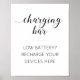 This charging bar sign can alert your wedding guests that they don't have to worry about where they can recharge their phones as you've arranged an area for this. Part of the Alejandra Collection.
