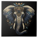 An elephant stands majestically, its head embellished with stunning decorative motifs. The blending of colors accentuates its features, creating a captivating and artistic representation.