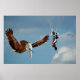 amazing crossbreed between bald eagle and mammal - meeting high up in the sky a parachutist while flying home to its nest