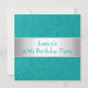 All Events, Celebrations, Announcements and Birthday Party Invitations. Suitable for all age birthdays and events. Rsvp is available upon request in similar style. Beautiful Stylish Embossed Metal Green Blue, Teal Paisley Pattern Background with Silver White Satin Trims and White Text. Change style and size of text with customise.