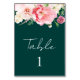 Elegant Emerald Blush Pink Floral Dark Moody Table Number