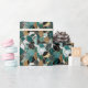 Present your gifts in style with this elegant geometric marble wrapping paper. The design features an intricate arrangement of irregular, multifaceted shapes resembling gemstones or metal shards, in rich shades of deep emerald green, luxurious gold, and elegant black, contrasting with the texture of white and gray marble. Subtle gold lines highlight the many shapes, adding a touch of luxury. This modern and elegant pattern is perfect for adding a sophisticated and distinctive touch to gifts for any occasion.