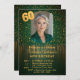 The top of the design shimmers with a cascade of realistic, shimmering gold sparkle over a deep green background, reflecting light and luxury. The large '60' numbers are rendered in a sleek metallic gold. A deep, dark green background and gradient offer a refined and upscale look, making it ideal for a formal dinner party or an evening celebration. Easily add your favorite photo to the central frame to make this card truly unique and personal.