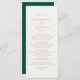 This elegant wedding menu features a chic modern design. The front is a cream with a modern gold typography, while the reverse side is a dark emerald green with your initials in a gold typography. Personalize with your names, wedding date and your menu.