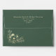 Simple, elegant, vintage boho emerald green green 5x7 envelopes for Wedding invitations with gold floral lace and return address.