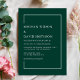 Plain white envelopes are included with paper invitations and will come to fit the invitation size you select. If you don’t need the envelopes, you may choose to not receive them by selecting the dropdown below "Envelopes" and choosing "None." If you’d like to have a design on your envelopes, you can browse all of these available envelopes to find the design that complements your Elegant Emerald Green Modern Wedding Invitation.