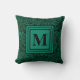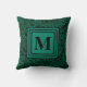 Elegant Emerald Green Monogram Foliage Pattern Throw Pillow