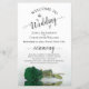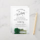These wedding programs are elegant and tasteful, while still being budget friendly. The design features a single long-stemmed emerald green rose lying on its side, reflecting in a pool of water with waves and ripples. The typography features lacy black script calligraphy, and there is room for details on the ceremony, the bridal party, and a short thank you.