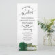 This beautiful wedding program features an elegant design with a single long stemmed emerald green colored rose lying on its side reflecting in water. The titles are written in fancy script calligraphy, and there is space for your ceremony and wedding party details, as well as a short thank you for your guests. Wonderful way to welcome your friends and family to your wedding celebration.