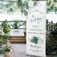 This beautiful banner will welcome guests to your wedding celebration. It features a simple yet elegant boho chic design with hand painted watercolor roses in shades of emerald and sage green, surrounded by sprigs of eucalyptus leaves and garden greenery. The lettering includes fancy script calligraphy adding a touch of elegance and style. Make your guests feel welcome at your wedding ceremony, or reception with this beautiful retractable banner or sign.