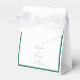 Looking for unique and memorable wedding favors? Look no further! Our charming emerald green favor boxes with a white ribbon are the perfect way to show your appreciation to your loved ones. The minimalist design allows you to personalize them with your initials or a special message, creating a touch of elegance. These sturdy boxes are ideal for holding small treats or gifts. They are sure to be a treasured keepsake from your unforgettable day.