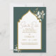 Elegant and modern emerald green wedding save the dates with gold accents. Find matching items in my shop.
