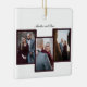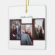 Elegant New Year's 3 photo collage Christmas ornament. Features red frame for photos. Designed for newly engaged couples or married couple, but can be used by families as well.