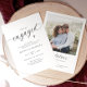 Invite guests to celebrate the happy couple with these elegant engagement party invitations. Designed in a modern minimalist black and white style, they feature stylish script typography and a simple, sophisticated layout. The photo of the couple on the back adds a personal touch, making these stylish and timeless invitations perfect for hosting an engaged couple’s special celebration.