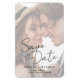 This modern, minimalistic wedding Save the date card features an elegant script front. It plays with the simplicity of a black and white typography design. In the back, you can add your wedding website information as well as a QR code for your guests to scan. It's the perfect choice for couples who appreciate clean and modern elegance. For any special design needs, feel free to get in touch with the designer directly by emailing choosehappystudio@yahoo.com