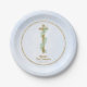 Elegant Eucalyptus and Cross Blue First Communion Paper Plates