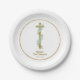 Elegant Eucalyptus and Cross First Communion Paper Plates