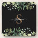 Elegant Eucalyptus Botanical Gold Monogram Script Beverage Coaster
