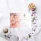 Elegant Eucalyptus Cross Photo Christening A set script for The Christening Of which is printed in real foil in either silver, gold or rose gold as is your baby's name. Replace the sample picture with your own favorite.