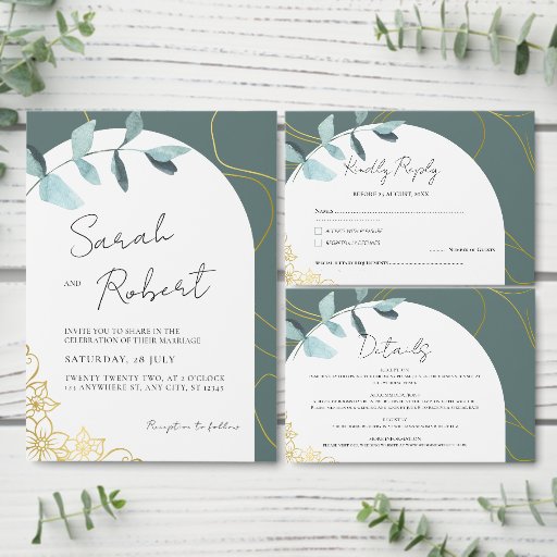 Elegant Eucalyptus & Gold Accents | Arch Theme Foil Invitation