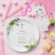 Elegant Eucalyptus Greenery Baptism Christening Paper Plates