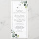 Elegant Eucalyptus Greenery Four Course Menu. The design features an elegant frame with watercolor eucalyptus, a monogram, and headers in modern calligraphy. This template includes First Course, Second Course, Choice of Entree, and Dessert. Personalize with your information, if you need help customizing, or different headers let us know by using the contact button below.