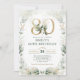 Elegant Eucalyptus Greenery Gold 80th Birthday Invitation