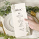 Enhance your wedding reception with this elegant eucalyptus greenery menu card. Designed with soft botanical accents and modern typography, this menu is perfect for nature-inspired or minimalist weddings. Fully customizable, it allows you to display your carefully curated dishes in style, creating a cohesive and sophisticated table setting. Ideal for adding a touch of elegance to your special day, this wedding menu blends beauty with functionality, leaving a lasting impression on your guests.