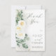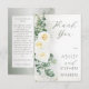 This elegant eucalyptus greenery wedding thank you card features white roses, soft botanical elements, and delicate gold accents for a refined and natural look. Perfect for greenery weddings and nature-inspired celebrations.