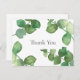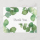 Eucalyptus leaves business thank you postcard, featuring delicate watercolour eucalyptus leaves framing your thank you message set in a chic slate grey text. This elegant design is ideal for a wide range of businesses including spas salons hair and makeup stylists boutiques beauticians and florists.