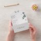An improved version of the tri-fold invitation now with a tear away rsvp section. Enjoy a minimalist watercolor eucalyptus illustration combined with an elegant calligraphy typography and a monogram. This all-in-one sustainable invitation would save you money, no need to include RSVP envelopes, your guests will tear away the last panel and mail it back to you as a postcard.