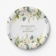 Elegant Eucalyptus White Roses Floral Wedding Paper Plates