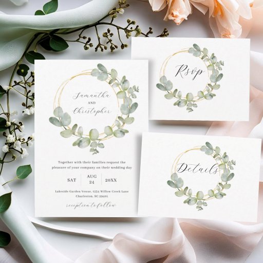 Green & Gold Eucalyptus Wreath Wedding CollectionDesigned by Lara Bjornson