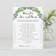 This funny game is very easy to play. There is only one rule: you must pick an answer. Give everyone 5-10 minutes to tick the choices on this greenery game sheet they think the mommy-to-be would make. When everyone’s finished, ask the mom-to-be what she’d actually pick and total up your scores. The person with the most correct answers wins!