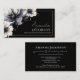 Elevate your professional presence with this elegant and versatile business card. Featuring a sophisticated black background adorned with an elegant mix of black, gray, and cream-colored flowers, this design exudes timeless elegance. The fonts are white and utilize a blend of script typography and classic serif lettering, providing a refined and tasteful look. Perfect for any business or individual, whether you're an event and wedding planner, florist, or any other professional, this business card offers a classic and professional appearance. You can customize all the text with your information and even change the background color if needed. Elegant and adaptable, this design ensures your business card stands out with style and grace. Elegant Event Wedding Planner Black Floral Business Card