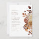 This elegant and modern bridal brunch invitation features hand-painted watercolor burnt orange and terracotta leaves, cream and beige dahlias, and beautiful rust-colored roses on a white background with brown text. Find matching items in the White Autumn Romance Collection.