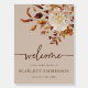 Elegant Fall Bridal Shower Foam Board. This elegant wedding sign features hand-painted watercolor burnt orange and terracotta leaves, cream and beige dahlias, and beautiful rust-colored roses on a taupe background with brown text. Find matching items in the Taupe Autumn Romance Collection.